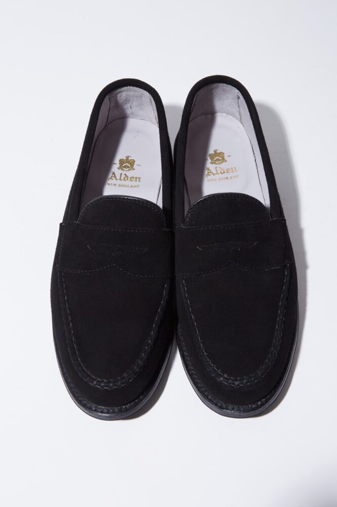お馴染みのヴァンラストを使ったモデルに、きめ細やかなブラックカーフスウェードでオーダー。ブラックのスムースレザーだと、どうしてもお決まりのイメージなってしまうが、スウェードなので個性的。11万7700円(ベイブルック)