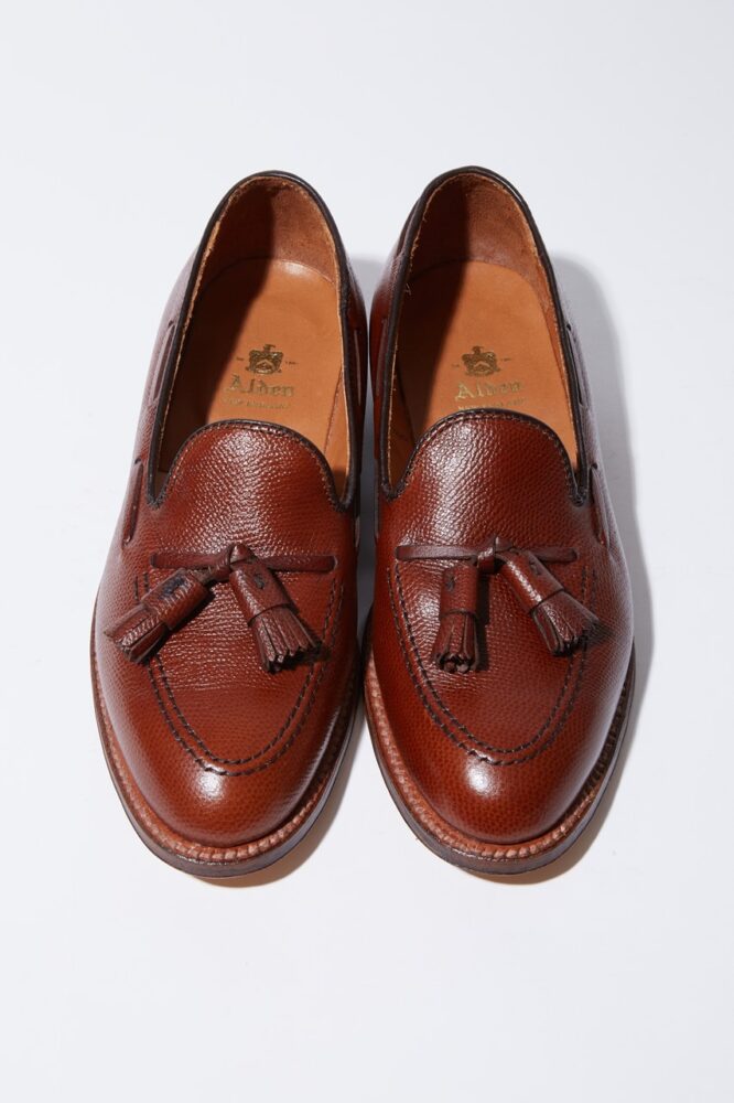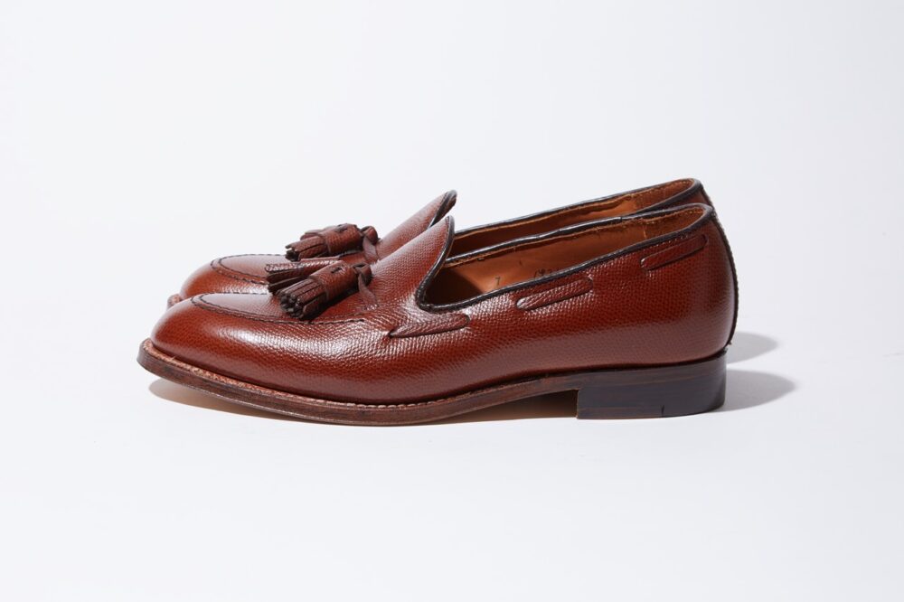 代表的なモデルのタッセルモカシンに、上質なカーフに型押しを施したアルパイングレインを使用。細身なフォルムのアバディーンラストを用いているので、型押しの重厚感がありながらもスマートな印象に。11万6600円(ベイブルックTEL096-322-8553)
