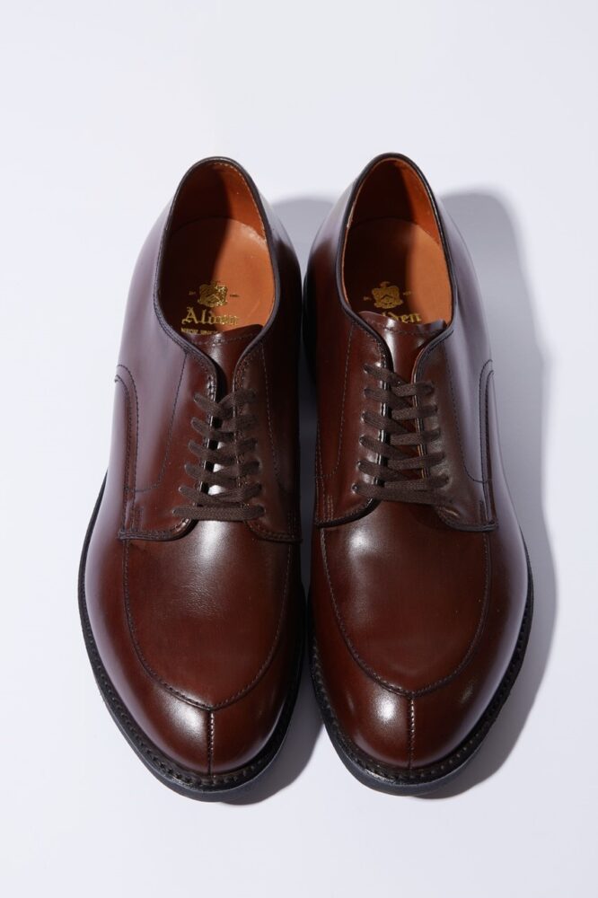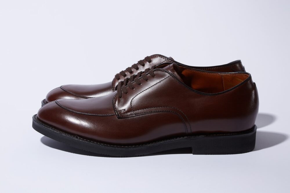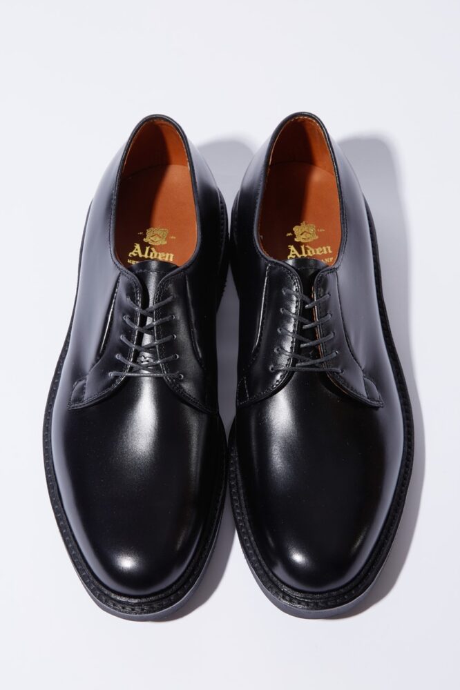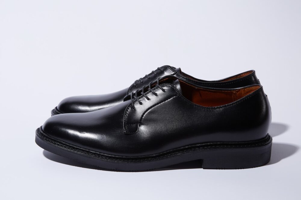 コードバンを用いた名作プレーントゥである9901を上品なカーフで別注。さらにレザーソールではなく、ドレスラバーソールに変更することで、より汎用性を高めている。天候を気にせず、気兼ねなく使える。 11万6600円(クリスピン)