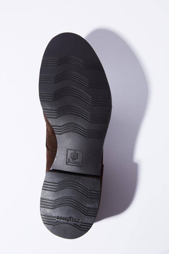 オンオフ問わず使えるデザインであるVチップは、レザーソールが多いが、使い勝手のよいドレスラバーソールでオーダー。エレガントなブラウンのカーフの雰囲気を損なわず、スマートなアウトソールなのだ。 11万6600円(クリスピン)