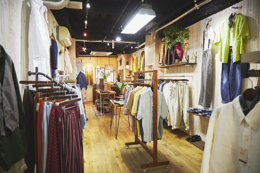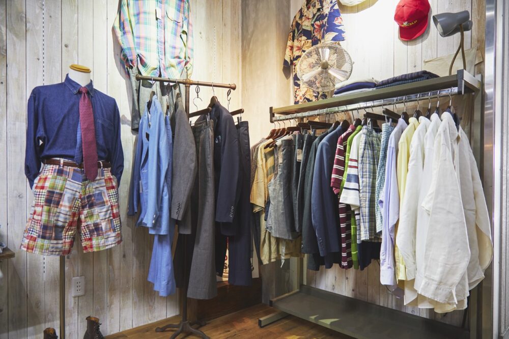 「フォーマルよりもカジュアルに、コーディネイトのアレンジを楽しめるのがトラッドやアイビーだと思う」というバイヤーの吉田さんの言葉通り、シャツやスラックスをはじめとするトラッドアイテムと、ミリタリーやワークなどのカジュアルアイテムがバランスよく並ぶ。2 階にはレディスフロアもあるので、20 ~ 30 代のカップルや夫婦での来店も多いという。