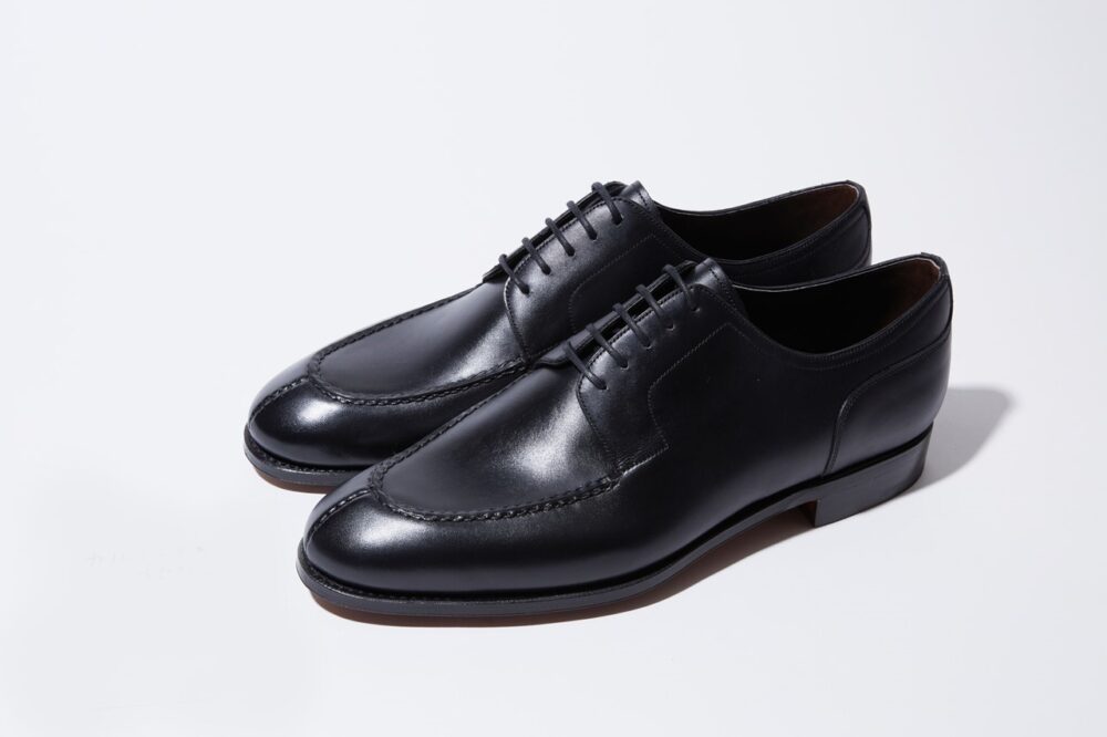 クラシックな英国靴のフォルムをリファインした新しいラストであるSINEUを使ったVチップシューズ。アッパーには上品なボックスカーフを使い、ソールにはしなやかで、削れにくいレンデンバッハソールを使った。8万9100円