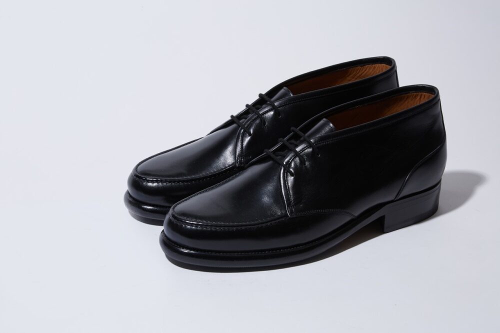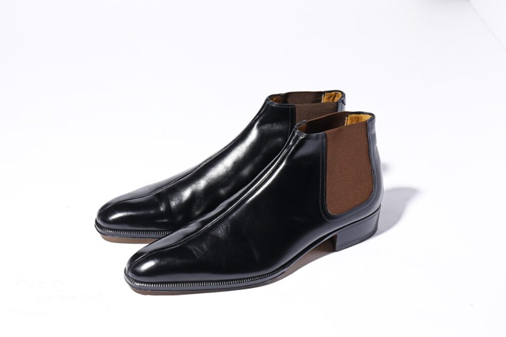 イタリアのフィレンツェでビスポークショップを営む深谷秀隆氏への別注。センターシームがアクセントになったサイドゴアブーツで、限りなくビスポー クに近いスタイルに仕上げている。シームを最小限にすることでエレガントに。13万2000円