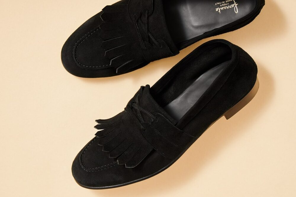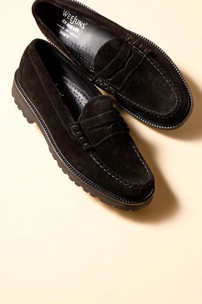 アメトラ定番のローファーであるラーソンを大胆に別注。本来は光沢感のあるガラスレザーであるが、そこを上品なスウェードに変更。さらにソールを軽量なライトソールに変更し、終日履いても疲れにくい仕様に。全体的にボリュームがあり、クラシックモダンな印象となっている。2万9700円