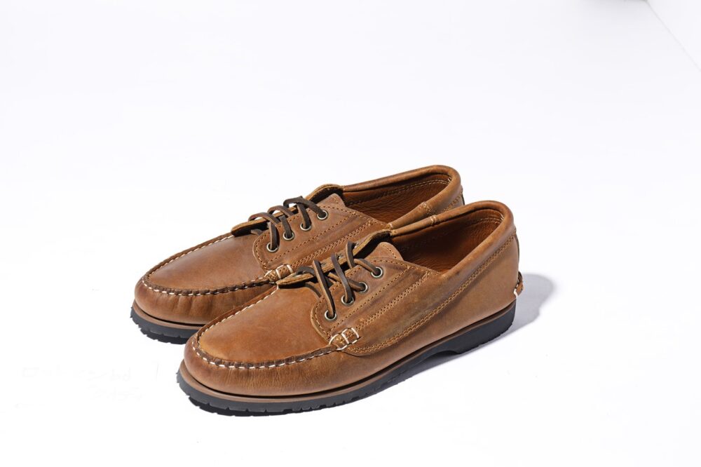 未だにメイン州で職人のハンドメイドによって生産されているクオディのマリシートオックスフォード。デッキシューズと比較するとボリュームがあり、パネル毎にブラウンの濃淡が魅力的な別注モデル。ワイズはD。4万5100円