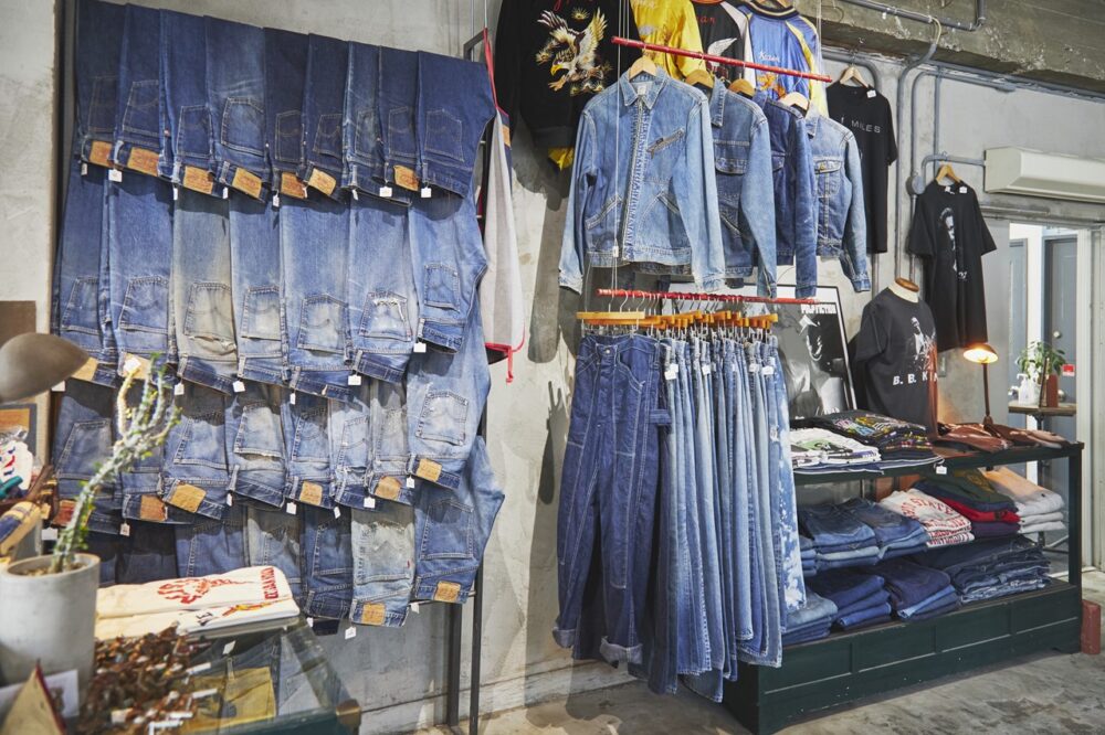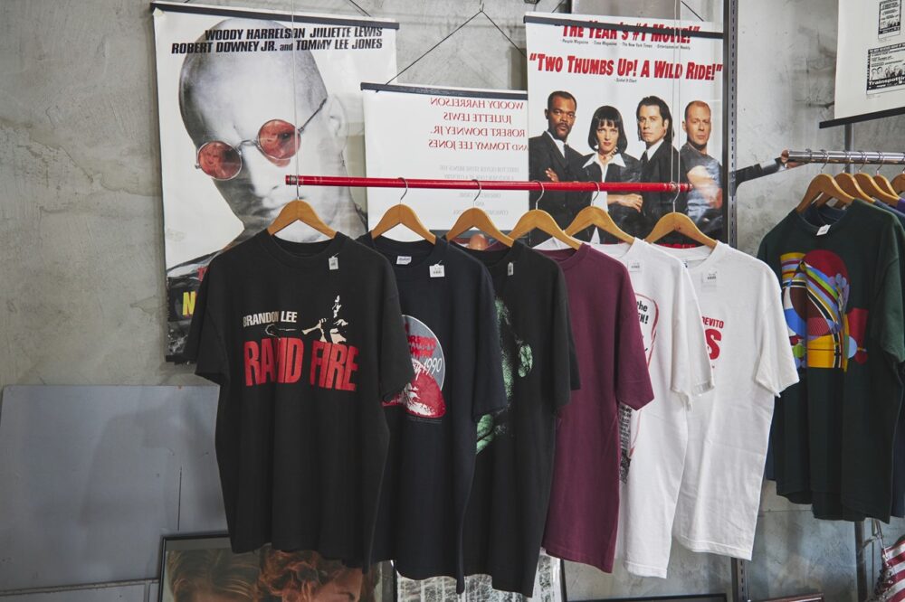 ヴィンテージのデニムや珍しいヴィンテージシャツが多く並ぶが、夏時期は特にジャズTやムービーTといったグラフィックTシャツの品揃えが特徴で、ポスターやグッズと共に展示されているディスプレイは必見だ。