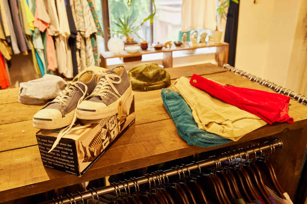 看板から釣り好きが伝わってくる「スイベルユーズドクロージング」。アメリカはシカゴを中心にバイイングしたアウトドアウエア・アイテムから、ミリタリーやレギュラーまでオーナー城谷さんの個性とセンスが光る商品がラインナップ。そのどれもがヴィンテージやブランドにこだわらないグッドデザインなものばかり。メローなBGMの流れる居心地の良い店内は商品だけでなく空間として楽しむことができるのも◎
