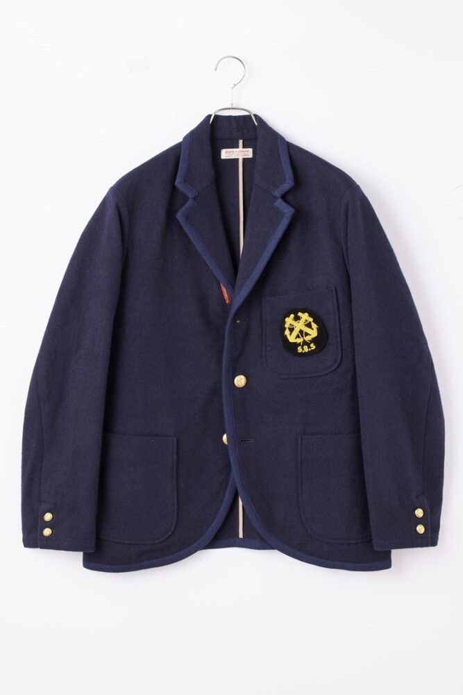 大島 スポーツウエアだったころのブレザーを彷彿させるヘリテージ感ですね。かなりラウンドした裾に襟のトリミング、胸にはモールのワッペンまで。