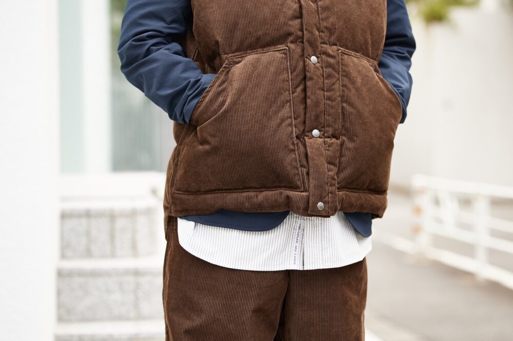 ダウンベスト3万9600円/ザ・ノース・フェイス パープルレーベル、シャツ2万4200円/ナナミカ、パンツ1万8700円/ザ・ノース・フェイス パープルレーベル(以上すべてナナミカ マウンテンTEL03-6416-3012)
