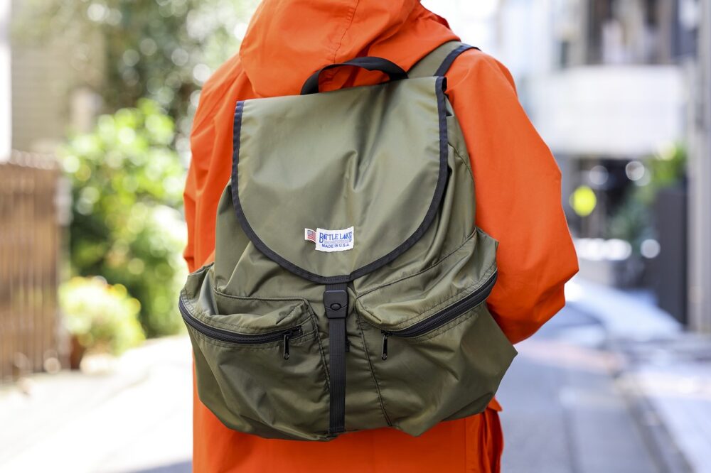 マウンテンパーカ5万5000円/シエラデザイン、シャツ2万9700円/インディビジュアルズドシャツ、タートルネックセーター3万3000円/ユーソニアンスポーツウエア、バケットハット1万7600円/アメリカントレンチ、バックパック2万4200円/バトルレイク、ベルト1万9250円/マキシマ ムヘンリー、シューズ5万5000円/ランコート(以上すべてユーソニアングッズストアTEL03-5410-1776) パンツ、ジャケット/共に私物
