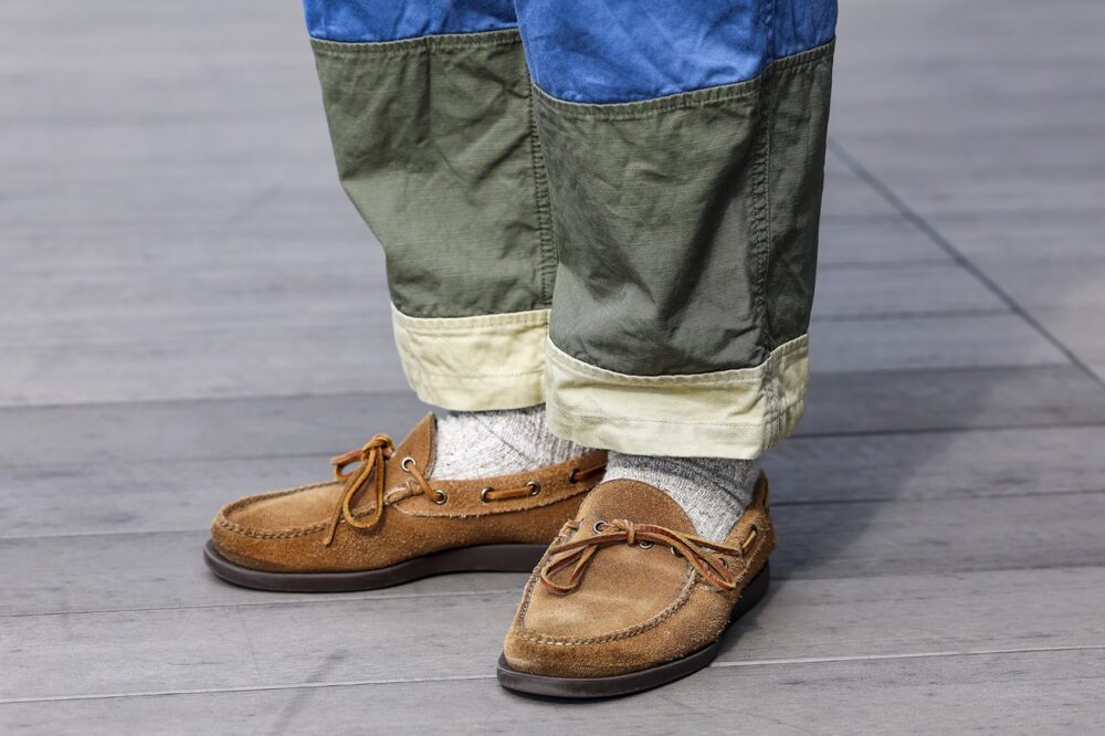 スポーツシャツ3万3000円/マウンテンリサーチ×ビームス プラス、パッチワークブッシュパンツ3万5200円/ビームス プラス、シューズ(キャンプモカシン)5万6000円/ランコート×ビームス プラス(以上すべてビームス プラス 原宿) キャップ/ビー ムスプラス(本人私物)