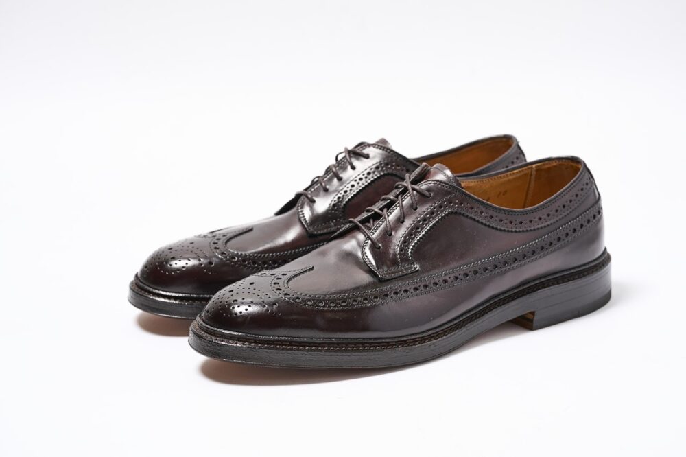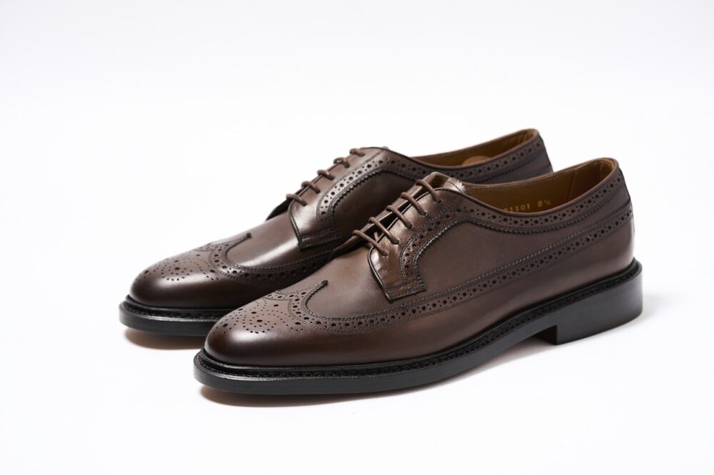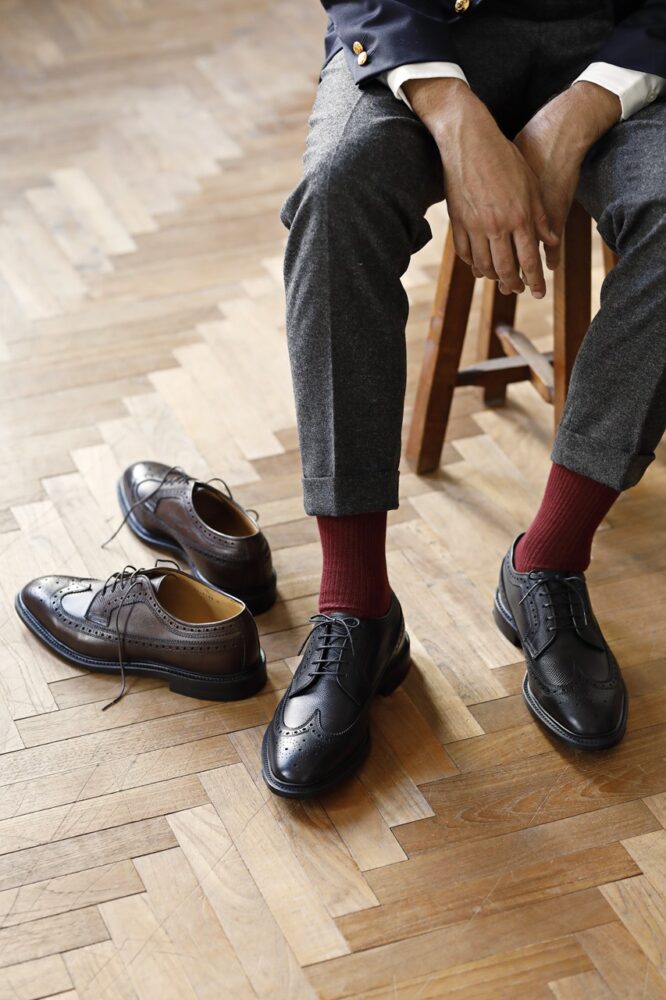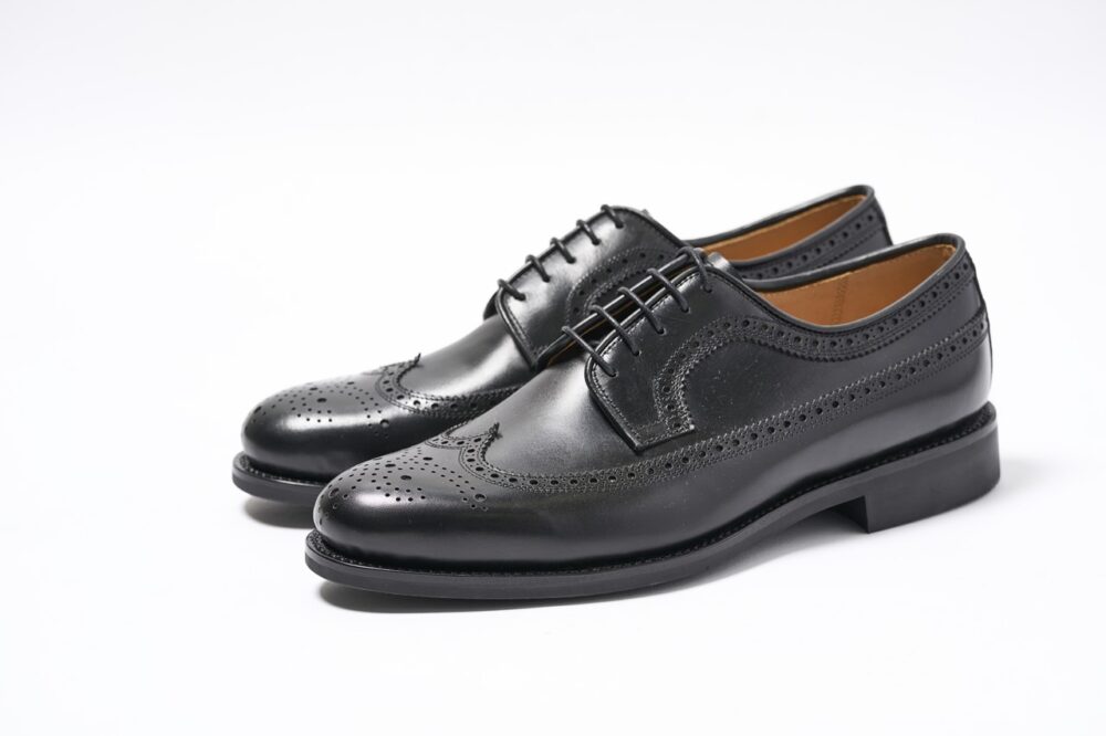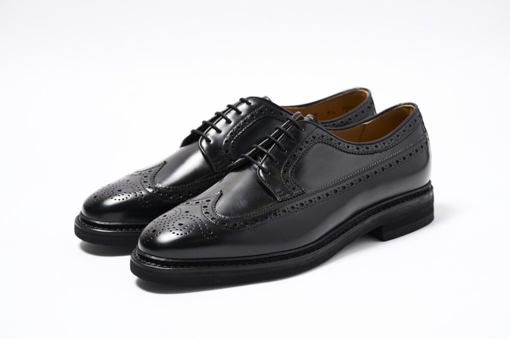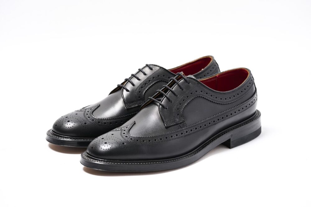 カールフロイデンベルグの最高級かつ最高品質のボックスカーフを採用した4アイレットのウィングチップモデル。職人が丁寧に仕上げるハンドソーン・ウェルテッド製法を採用するなど、一足への手間を惜しまない姿勢が伺える。14万3000円(オリエンタルシューズTEL03-6804-3280)