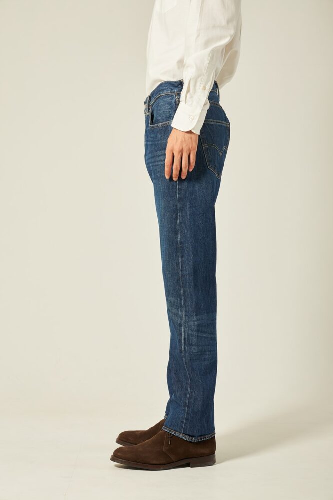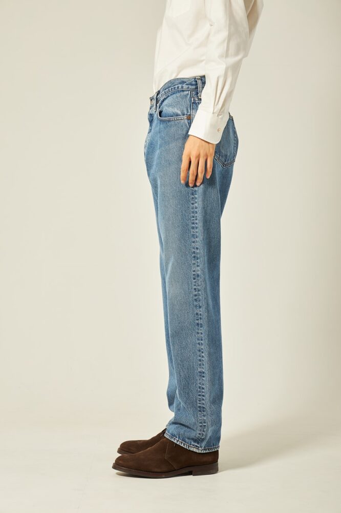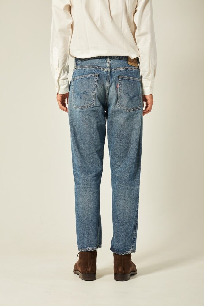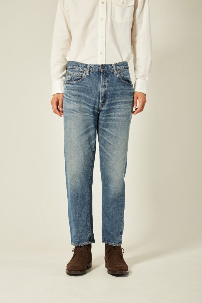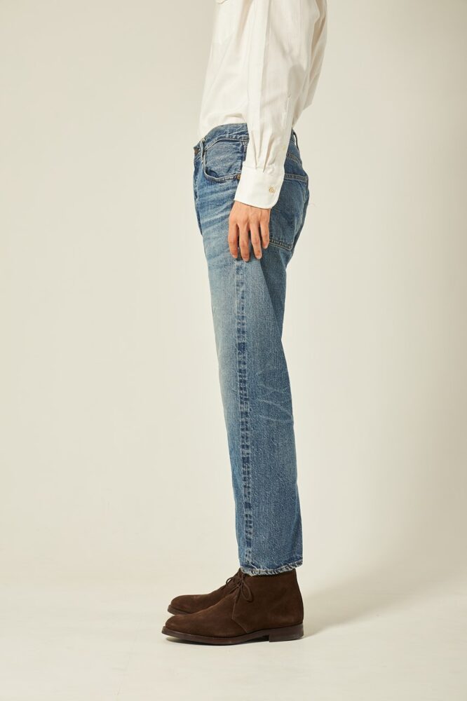 股上がやや深くゆとりのある腰回りだがテーパードは強く、スタイリッシュなシルエット。ヴィンテージのようなユーズド加工はこのモデルの代名詞だ。2万6400円(ウエアハウス東京店TEL03-5457-7899)