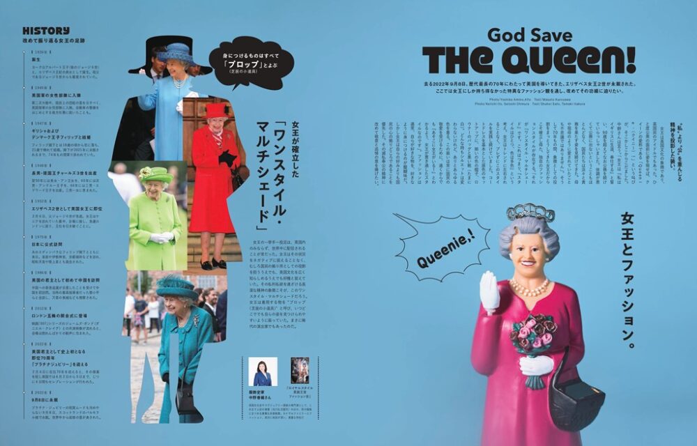 去る2022年9月6日、歴代最長の70年にわたって英国を導いてきた、エリザベス女王2世が永眠された。そんな女王の滅私奉公の精神に敬意と追悼の意を捧げ、女王の特集を製作。身に着けるものすべてを「プロップ(お芝居のための小道具)」と考える「ワンスタイル・マルチシェード」という女王独自のスタイルや、英国のファッションブランドとも関係の深い王家御用達の証である「ロイヤルワラント」を再度おさらいする企画など、ファッションを通じて女王の功績に迫る、セカンドだからこそ成し得る内容となっている。