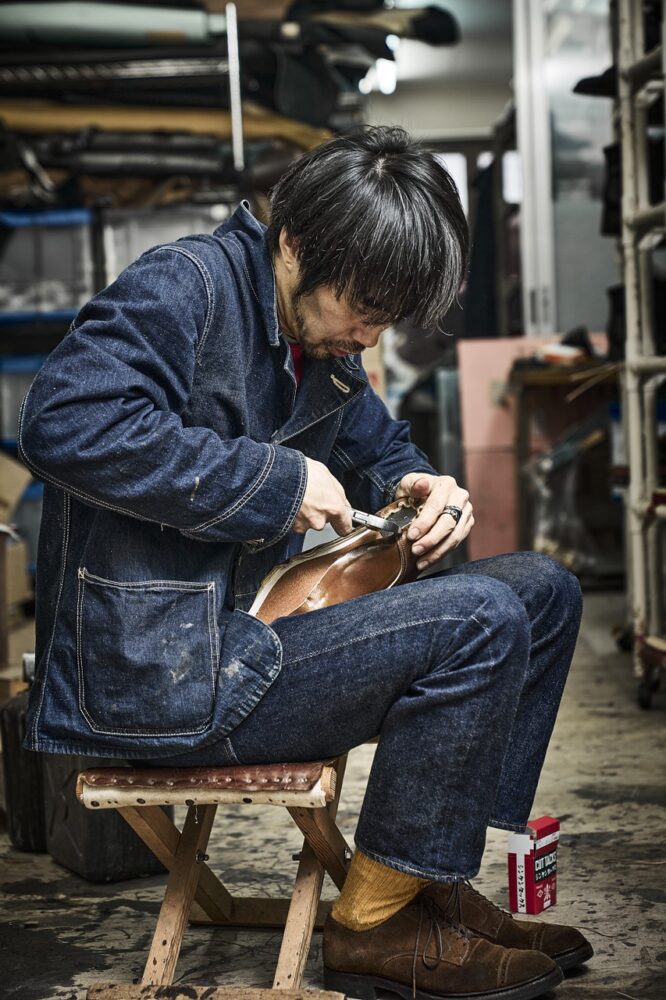 今回はそんなサービスシューズの特性をコードバンに載せ替えられないかという挑戦でもある。あのサービスシューズ特有の真横に入る横ジワがコードバンで再現されると聞けば、そのエイジングを想像するだけで笑みがこぼれてしまうのは必然だ。