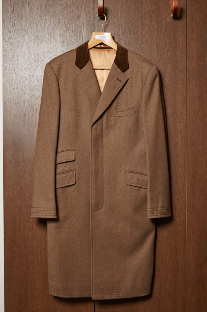 かつてGQジャパンの連載で挿絵を担当していた音楽家・加藤和彦さんの影響を受け、オーダーしたカバートコート。英国人にとっては、スーツの上に羽織るなど、定番的なスポーツコートである。