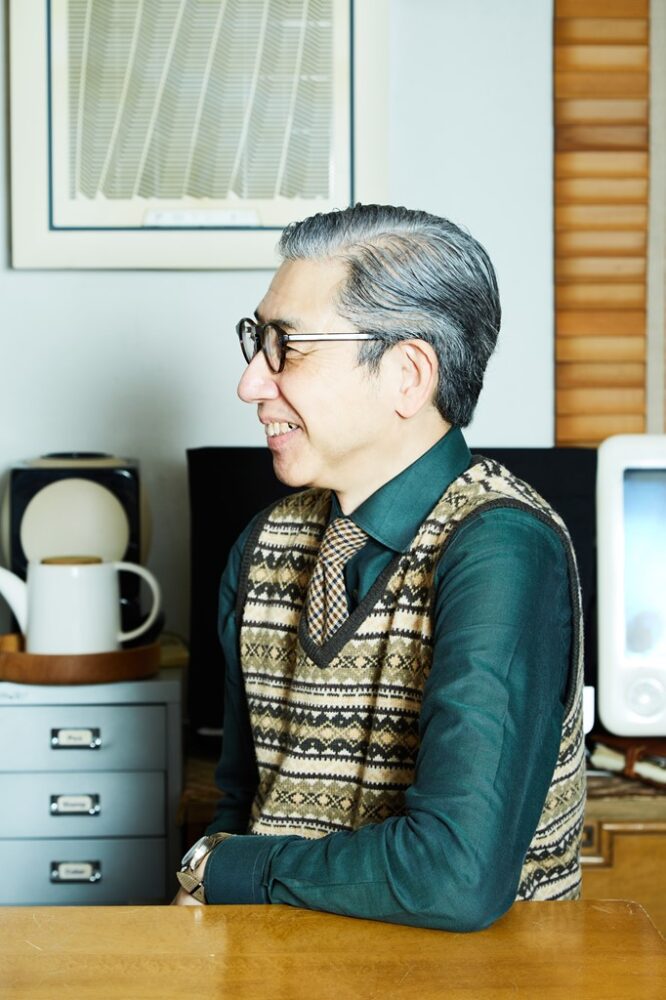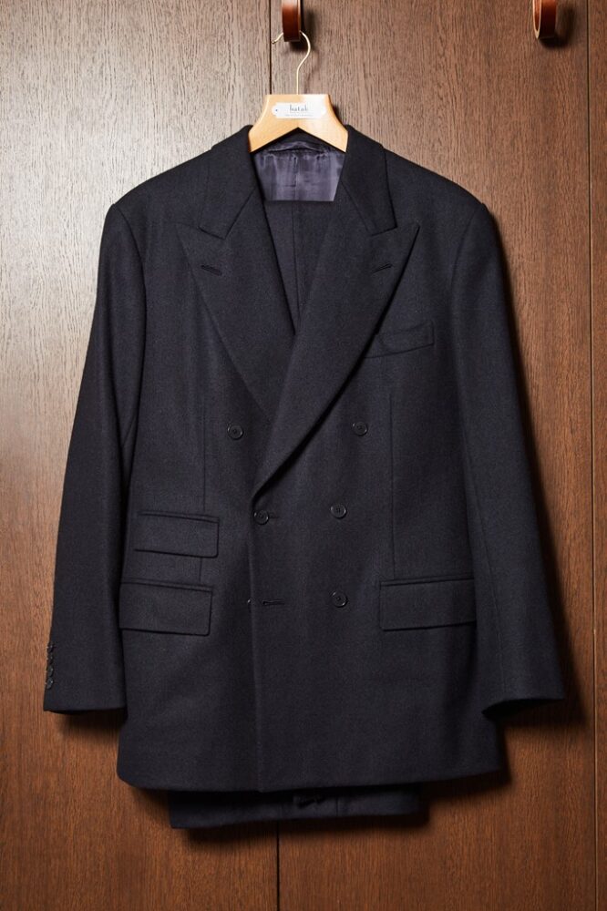 ソリマチさんのワードローブは 大半がビスポークで誂えたもので、すべて「バタク」製。「いまでは観光地化してしまったサヴィル・ロウが、特に素晴らしかった30~60年代の雰囲気をもった珍しいテーラー」とのことで、日比谷にある店舗を訪ねた。