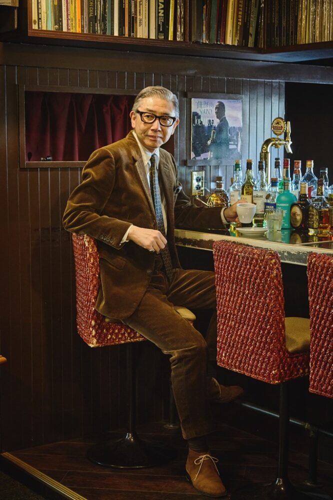 ブトリラの世界観を共有できるジャズ喫茶「渋谷スウィング」を訪れるときは、バタクのコーデュロイ生地のスーツを着込んだドレスコーデ。モダンに着飾り、上質な音楽とコーヒーを満喫。