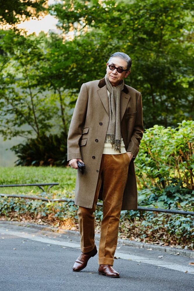 「これからの時期は長めのコートを羽織って歩きたいけど、個人的にはカバートコートが最も好き。ハンティングがルーツにあるアイテムで見た目以上に動きやすいんです」と、20年来の お気に入りのアウターを主役にしたスタイリングを披露。
