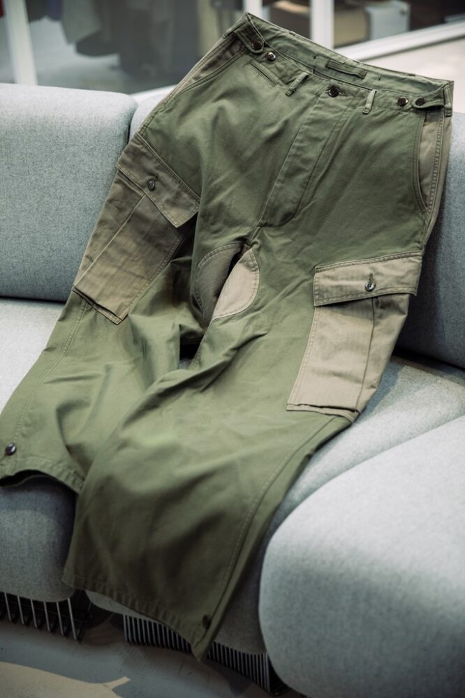 ロイヤルネイビーのコンバットパンツをベースに、ナイジェル・ケーボンとコラボしたモデル。40~60年代の英国と米国のミリタリーをブレンドした絶妙な塩梅が魅力。「10年以上やっていなかった別注モデルで渾身の出来です」4万1800円