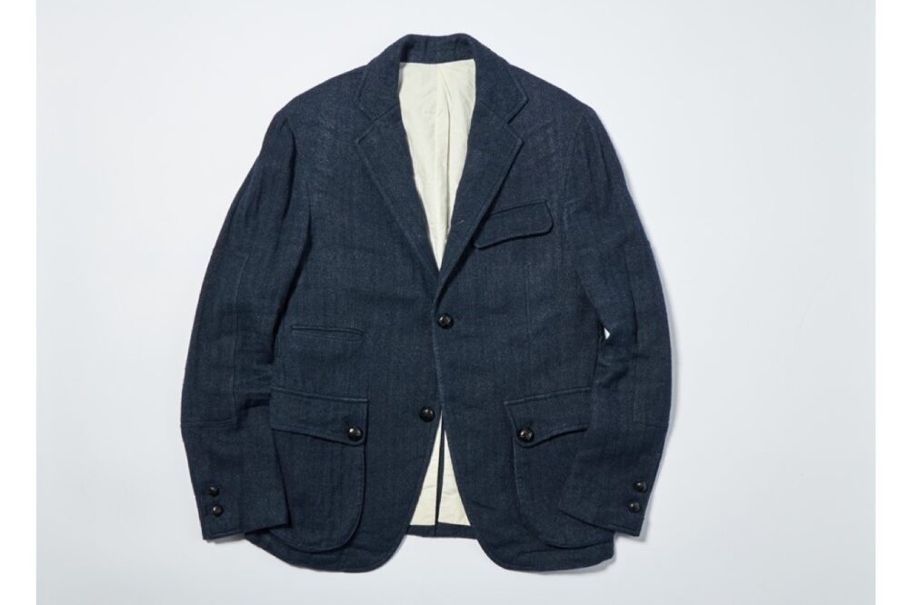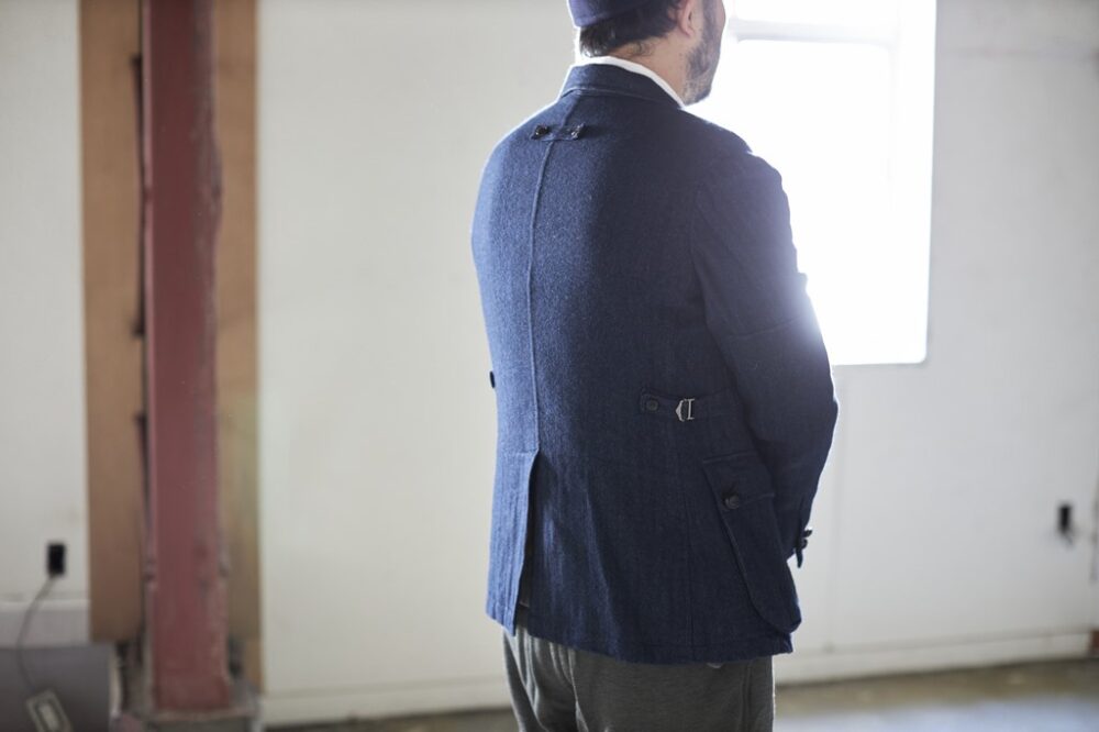 「インディゴウール生地が使われています。ウールとはいえインディゴなので、 ラフに水洗いしていました」。スレーキがコットンなので縮率が異なり生地が突っ張るが、それも表情と捉えているそう。