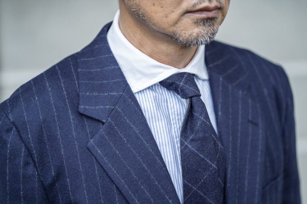 2.「ケネスフィールド」デザイナー・草野健一さん|英米トラッドアイテムを組み合わせ、ウインドウペンのネクタイで中立を表現。