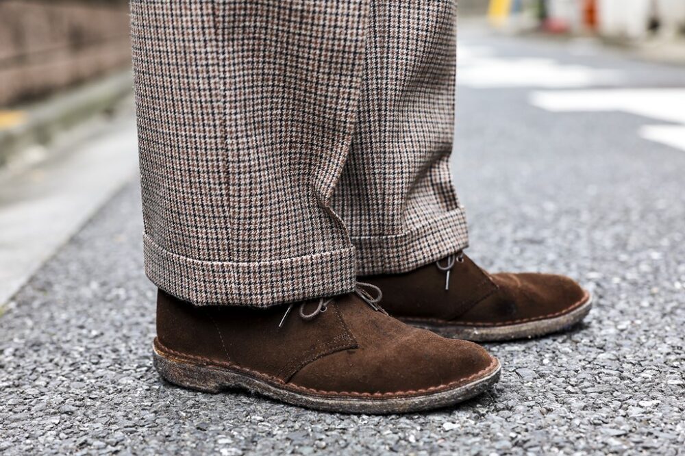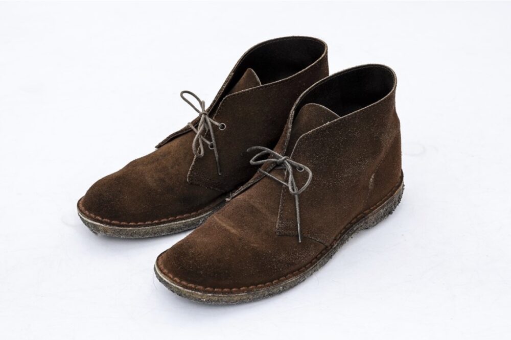メイドインイングランドのデザートブーツは、長年愛用してきたお気に入りの1足。クラークスのシューズは、そのほかナタリーやワラビーなど、定番アイテムを複数所有しているらしい。私物