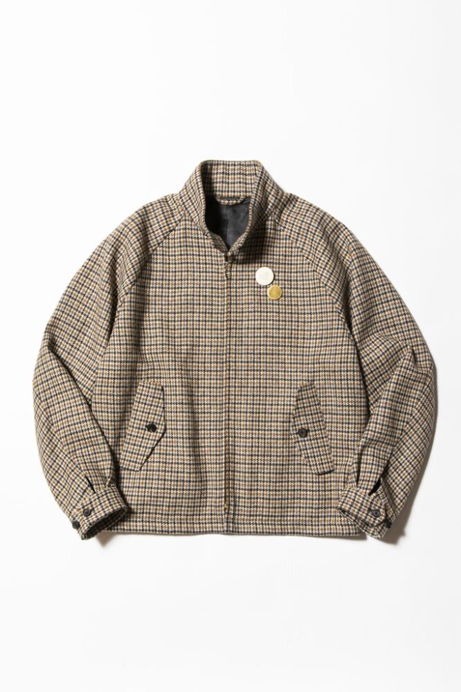 国内ブランドのザ クラシックに別注し、創業250年の英国フォックス社のツイードをオン。「バッジでアレンジしています」。12万8000円(ランド オブ トゥモロー 丸の内店TEL03-3217-2855)