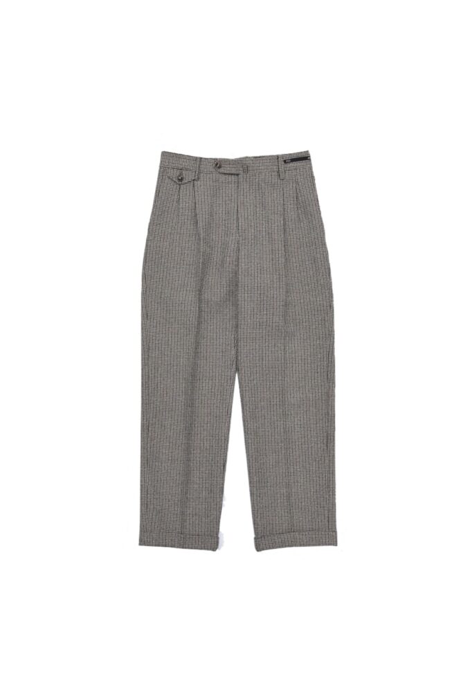 トラウザーズ専業ブランドらしい美しいシルエットが魅力。緩やかなテーパードが、足元からすっきりとした印象を演出してくれる。イタリアブランドながら英国由来の柄や素材がブリティッシュ。私物