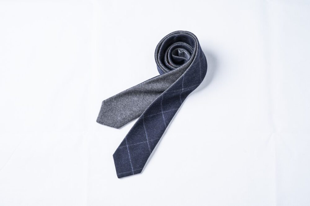 「大剣・小剣ともに同じ幅で、Wフェイスなので両面使えるので、計4通りのパ ターンが作れます。ブランド立ち上げの頃から生地・柄を変えて展開する、ケネスフィールドの定番アイテムですね」