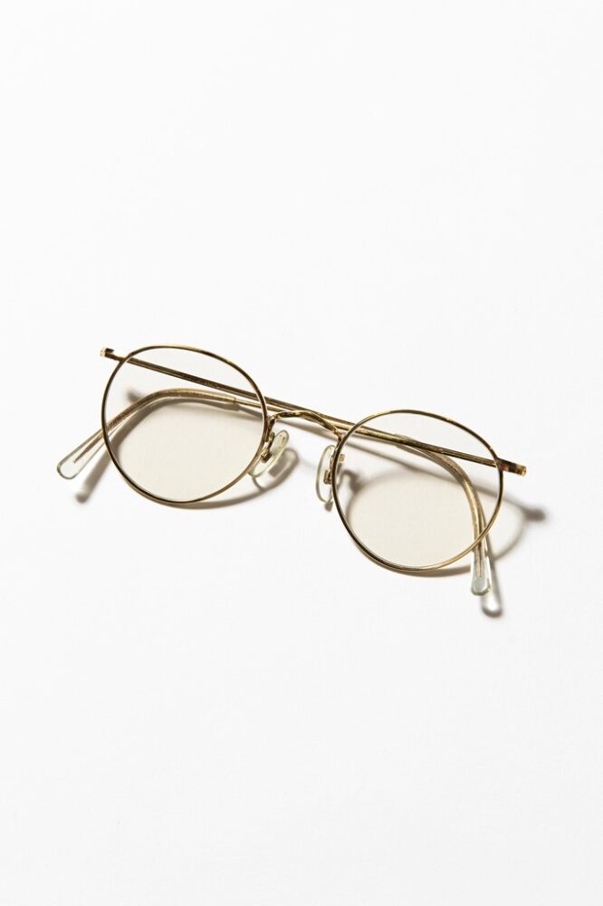 安武さんのキャラクターでもあるアイウエアは、70年代製。デッドストックの ものを購入し、濃度の薄いカラーレンズを装着した。「金張りのフレームとク ラシックなフォルムは色褪せません」