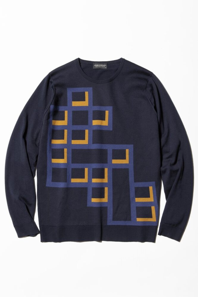 シェトランドニットの王様、エベレスト。「質の良いモノを取り扱いたいと思ったらこのブランドに落ち着きました。タイル柄は残った糸を使って編まれるので、いまでいうサスティナブルですよね」
