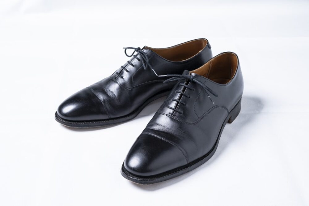 「ビームスFが別注をした、カーフ素材のシンプルなストレートチップです。汎用性が高いデザインなので合わせるのには困りませんが、特にスーツを着る際の登場頻度が高いです」