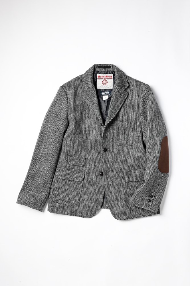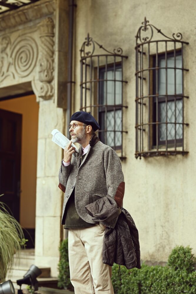 三軒茶屋の老舗が提案するジャケットはハリスツイードを使ったカントリースタイル。これぞ王道といった重厚かつ存在感抜群の1着は、かえって新鮮で個性豊かなスタイルに。4万9940円(セプティズTEL03-5481-8651)