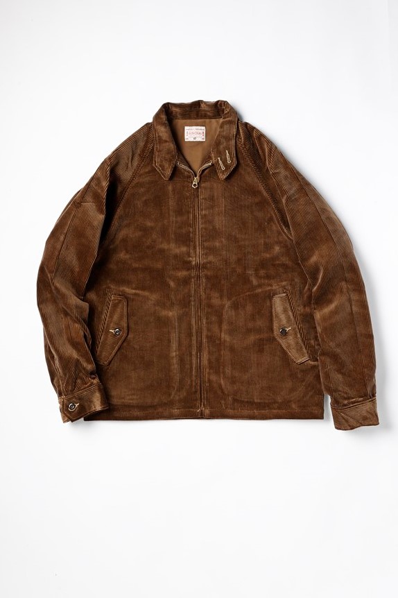 オリジナルの太畝コーデュロイを採用したハリントンジャケット。ドッグイヤーの襟など往年の意匠を落とし込み英国らしさを残しつつ、アメリカンなスタイルに仕上げた。5万8300円(サロン ボンクラTEL072-968-7073)