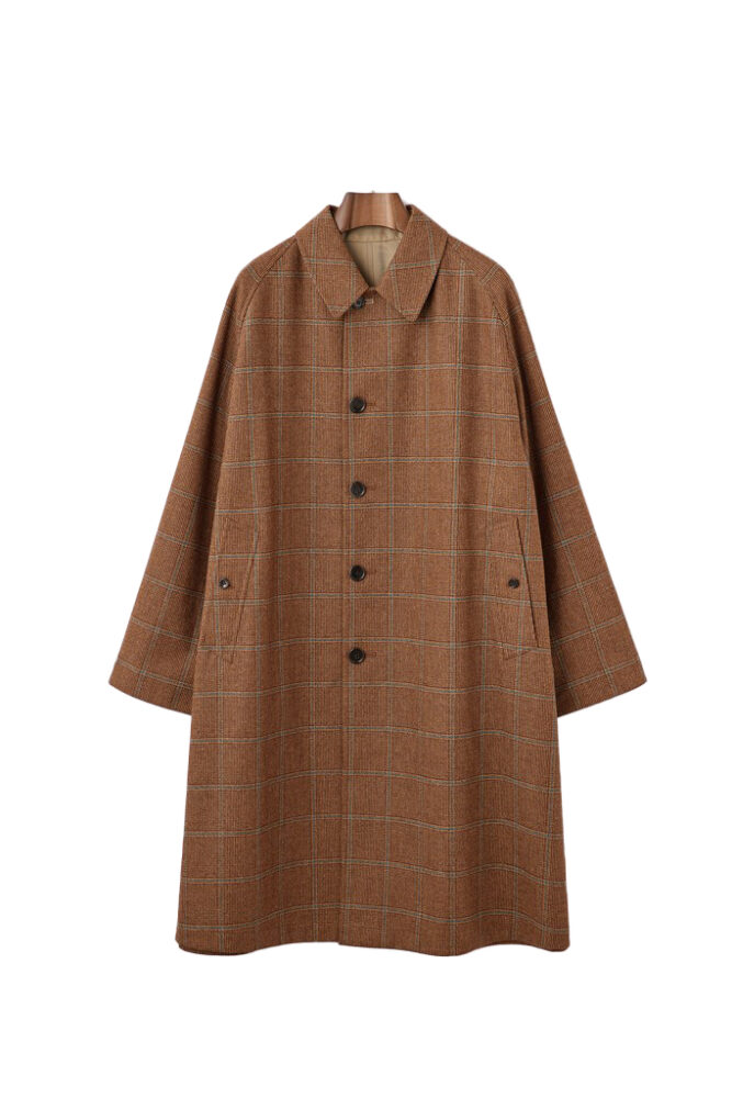 毎年の定番となるリバーシブルのラグランコート。1枚のパターンで構築される特徴的な1枚袖をアイコンとしており、これによってボリューミーなシルエットに。22万円(アナトミカ 東京TEL070-3144-0378)