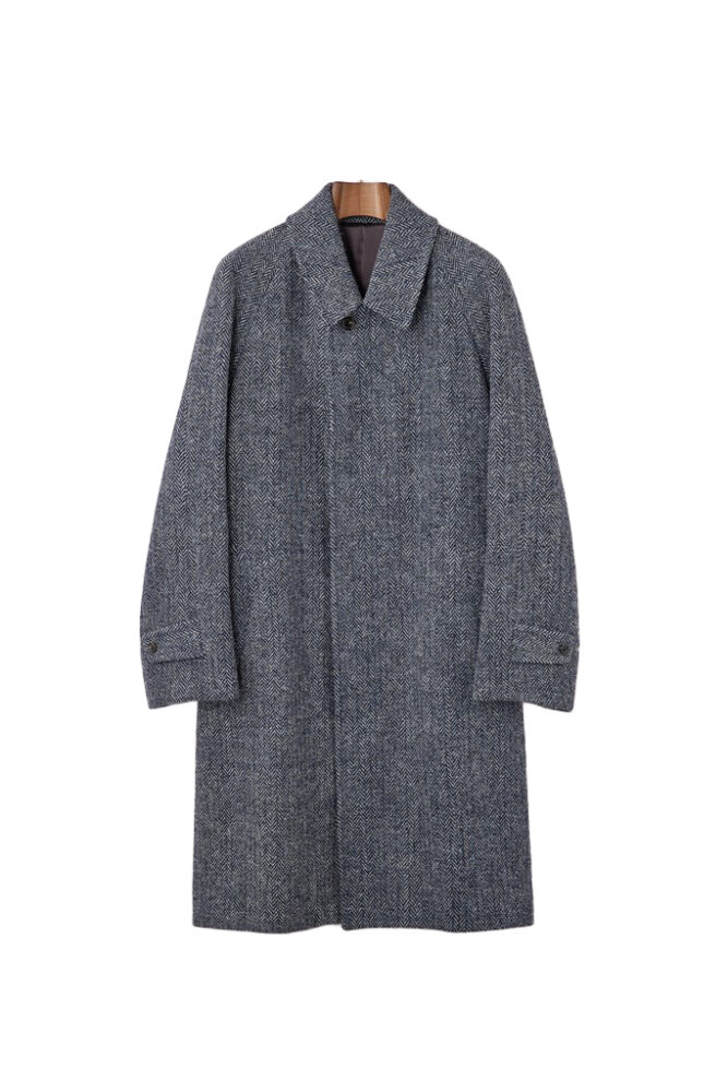 オリジナルの手織りツイードを採用したテーラードコート。超希少な「Hattersley」という織機を使って職人の手で織り込まれる生地は格別で、まさに一生モノ。25万3000円(サロン ボンクラTEL072-968-7073)
