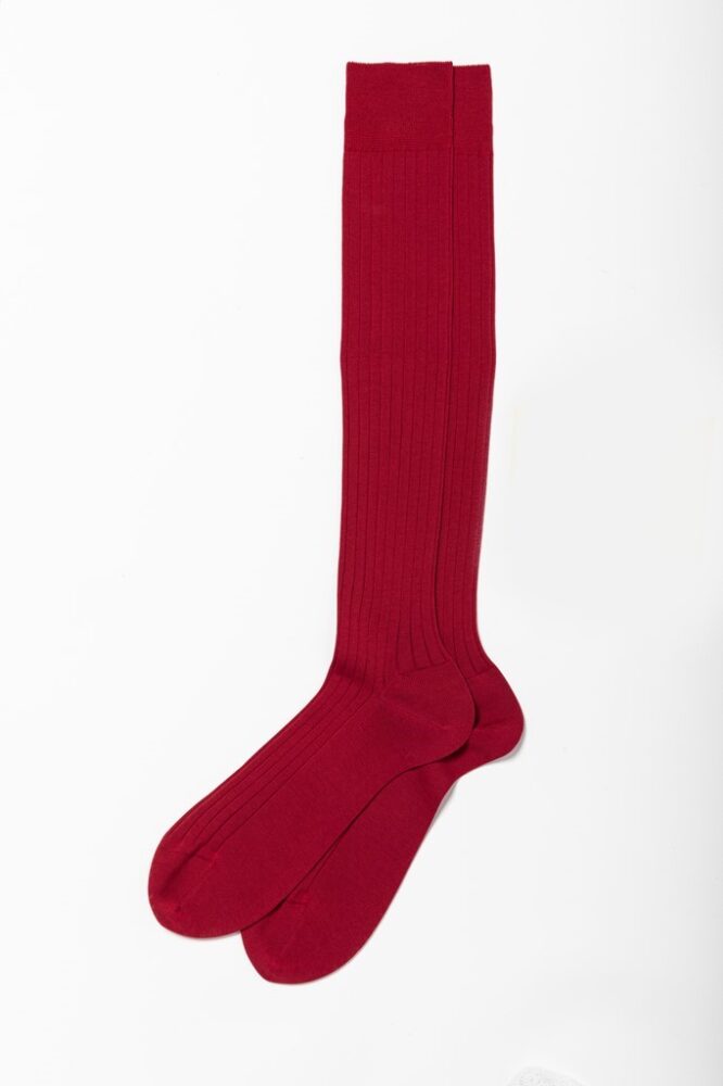 スーピマ綿の84番双糸を使ったロングホーズ。1650円 (ハリソンTEL079-428-0150)