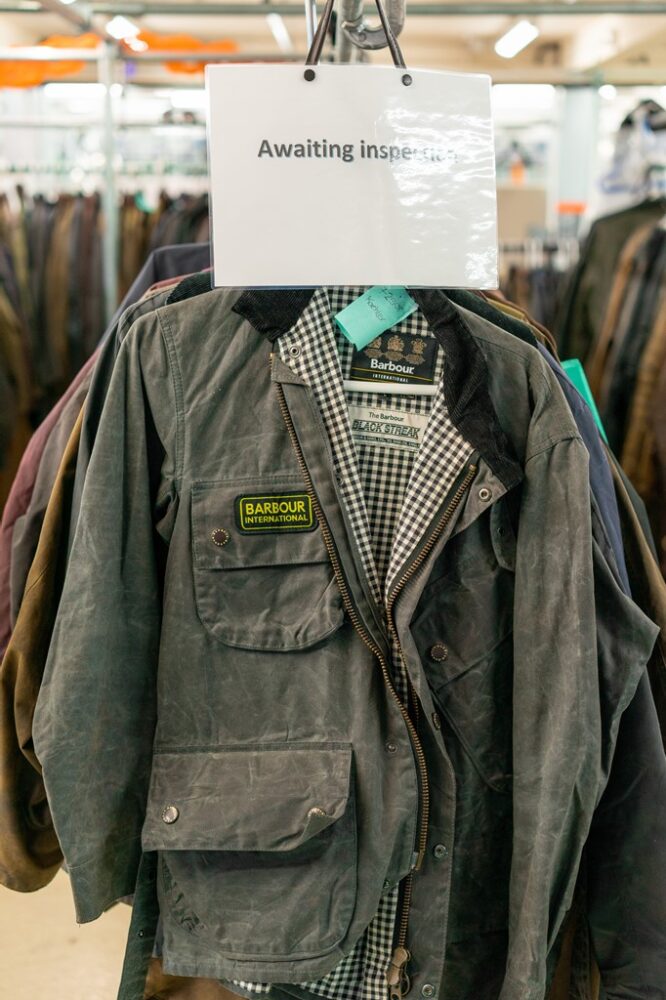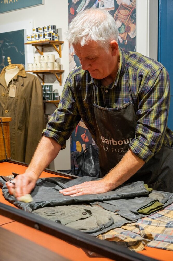 およそ160の工程を36人のスタッフで分担し、60~90分が費やされるという、ひとつのワックスジャケット。これは効率を優先する現代的な生産体制と比較するとかなりアナログであり、職人ひとりひとりの熟練の技がなければ成立しない。