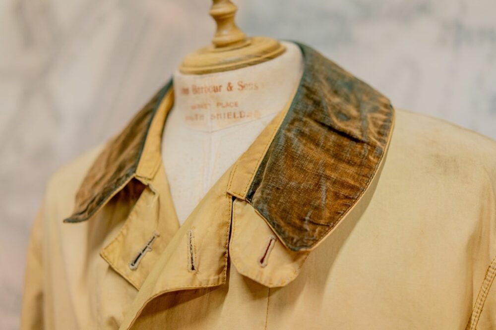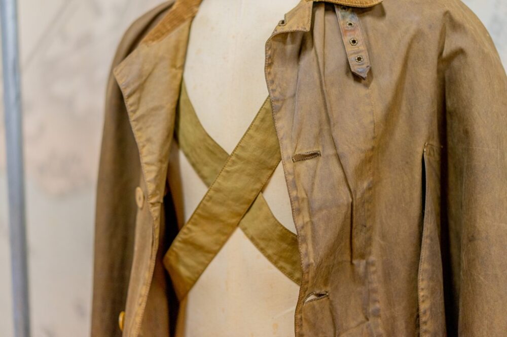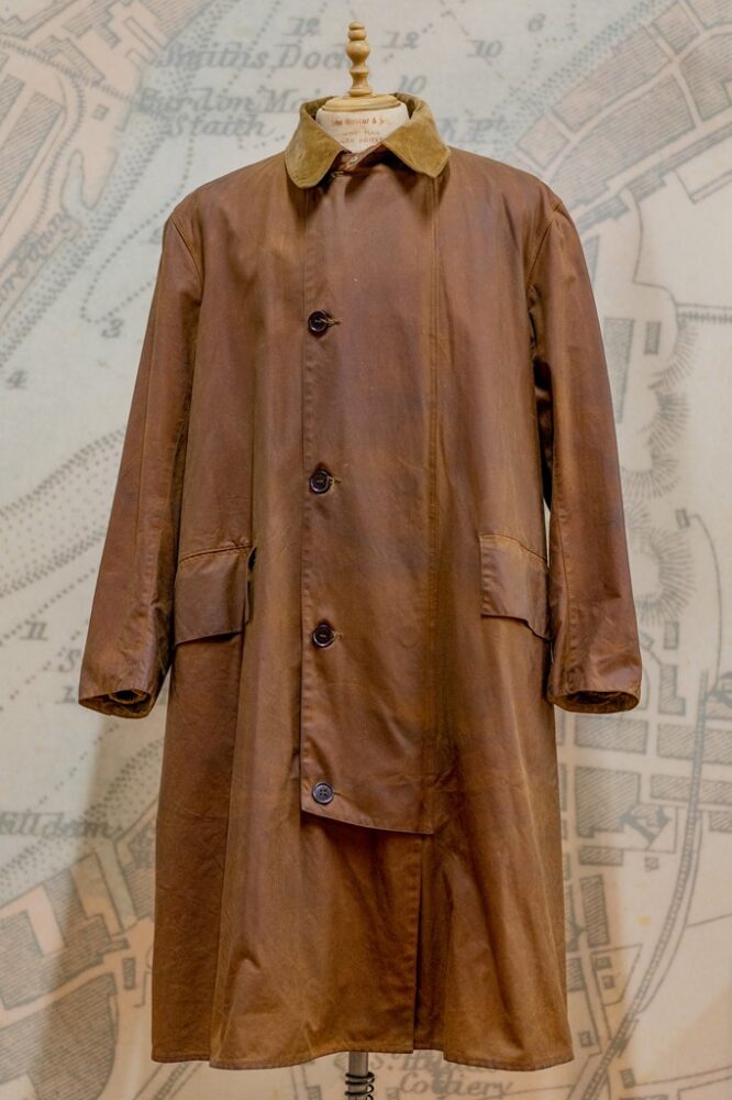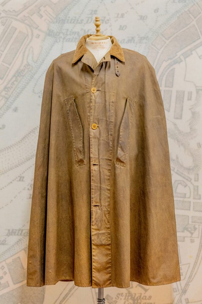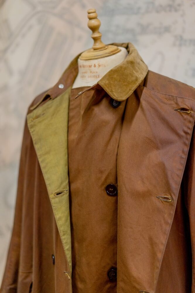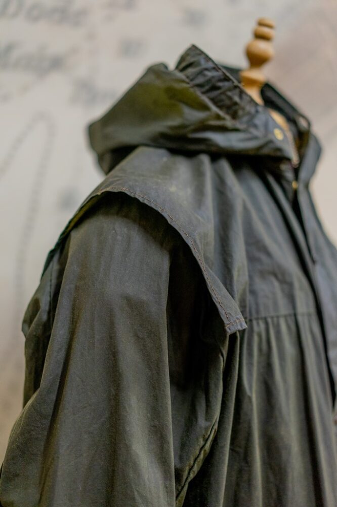 バブアーが保有するアーカイブのなかでも最初期のひとつ。袖はなくマントのように身体を包み込む外套のような形状で、生地は防水性のあるライトオンスのシルコイルワックスコットンを使用。
