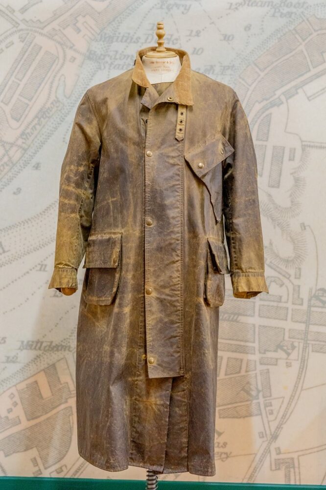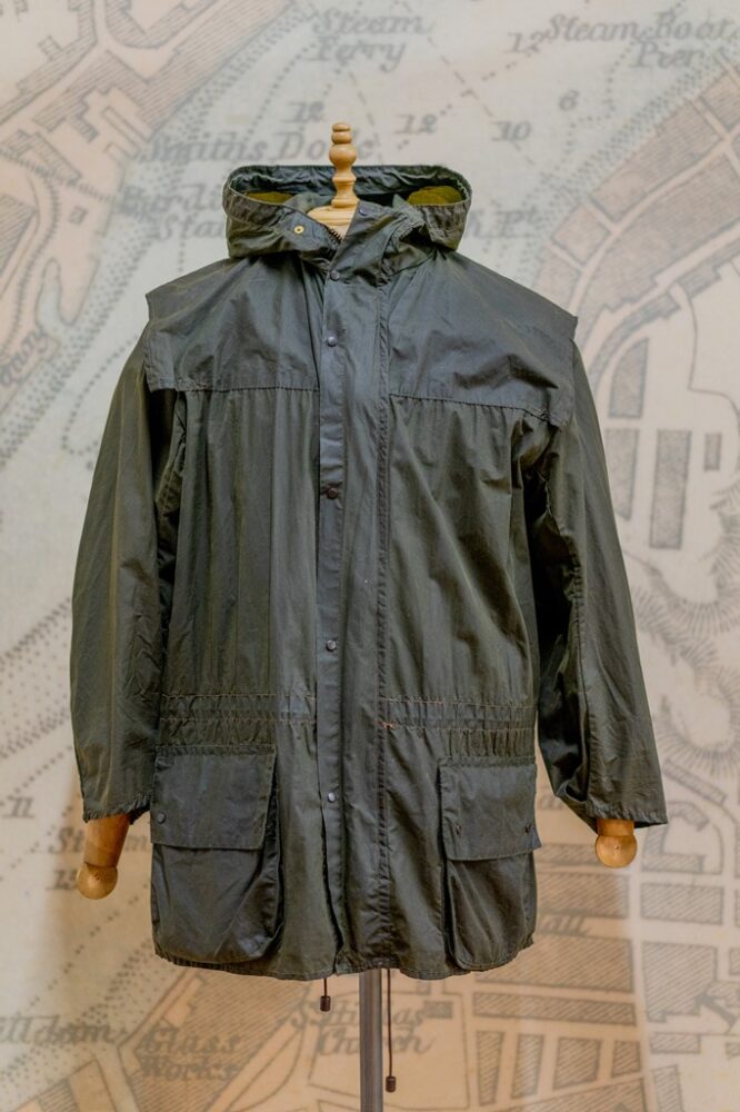 裾のばたつきを抑える内側のサドルストラップから乗馬用と判断できる。当時はまだ交通手段のひとつであった乗馬だけに、レジャーのみならず日常生活にもバブアーが浸透。36年間にわたって作り続けられたロングセラーアイテムだった。