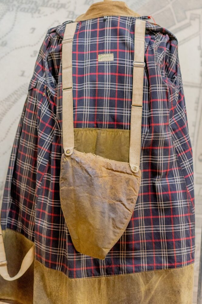 当時の資料によるとドライブや釣り、乗馬、射撃、ウォーキングやゴルフなど、様々な用途のために開発されたことがわかる。内側には前身頃で交差するストラップが施され、天候が良いときは、肩から背負って携行できるようなデザインになっている。
