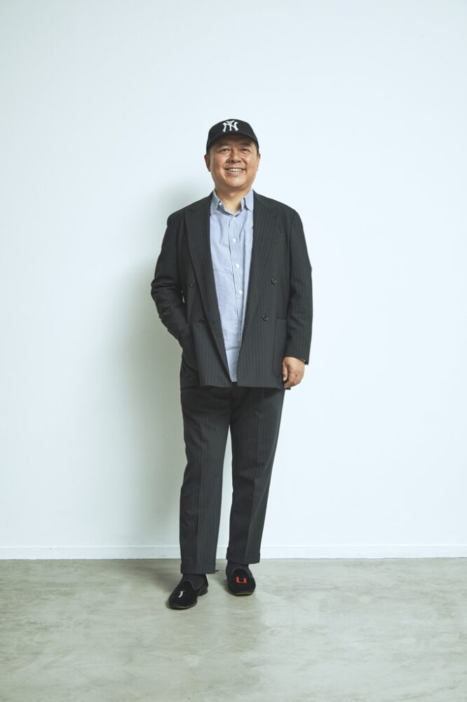 小沢さん 改めてプレゼンテーションを見て、いい意味でショックを受けました。「なんて楽しくて自由に着られるスーツなんだろう」って。以前もカルーゾのスーツは買ったことがあって、今日着ているのがそれなんですけど、買ったときには最初に話したとおりのイメージを持っていたので、白シャツにシルクの黒いニットタイでオーセンティックに合わせようと思っていました。