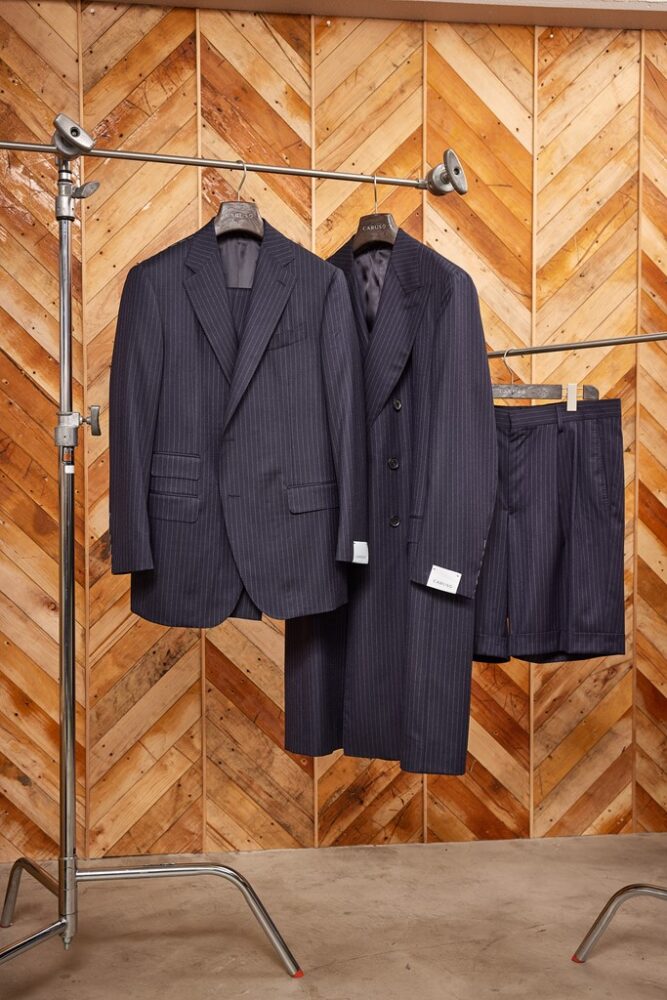 栗野さん そういうふうに自分のスタイル自由に組み合わせられるテーラードってあんまり見かけないんですが、カルーゾはまさにそれが可能な服なんです。僕はカルーゾのジャケットにカラーの極太のパンツを合わせることも多いのですが、そんなエクストリームな着こなしにも合ってしまう柔軟さがありますね。それはこのファクトリーが世界各国のいいブランドの生産も手がけていることと大いに関係していると思います。