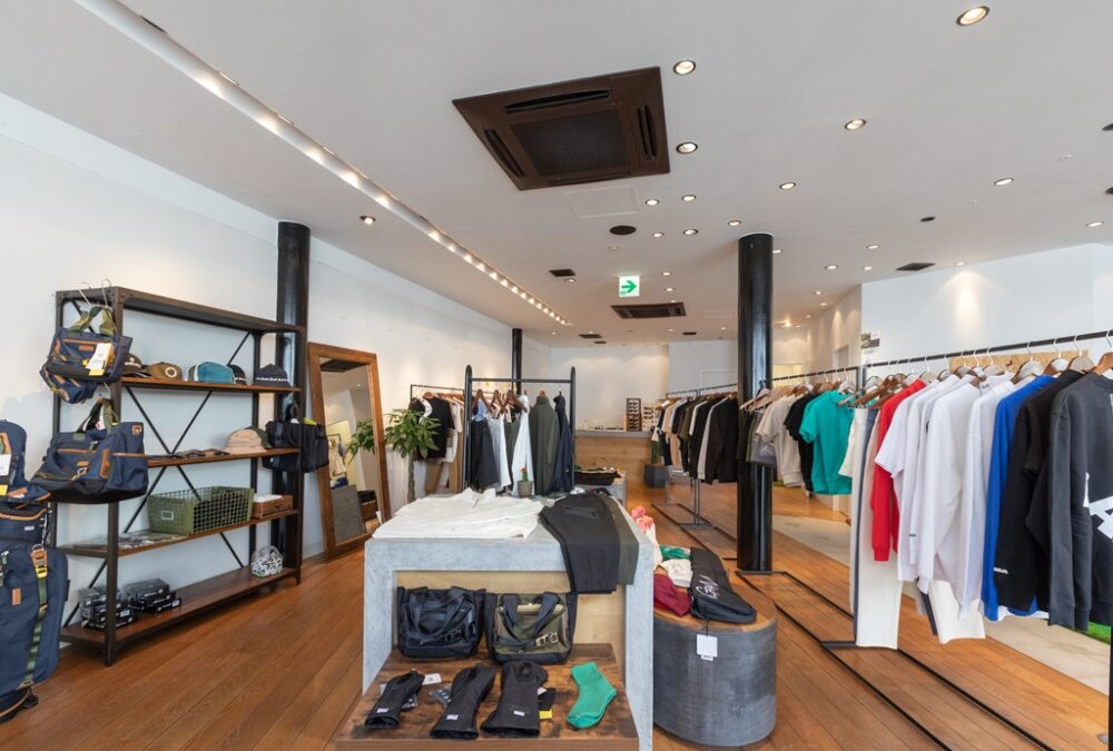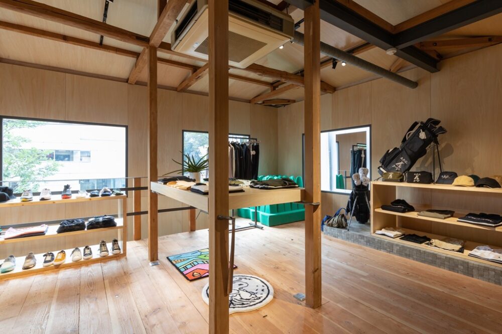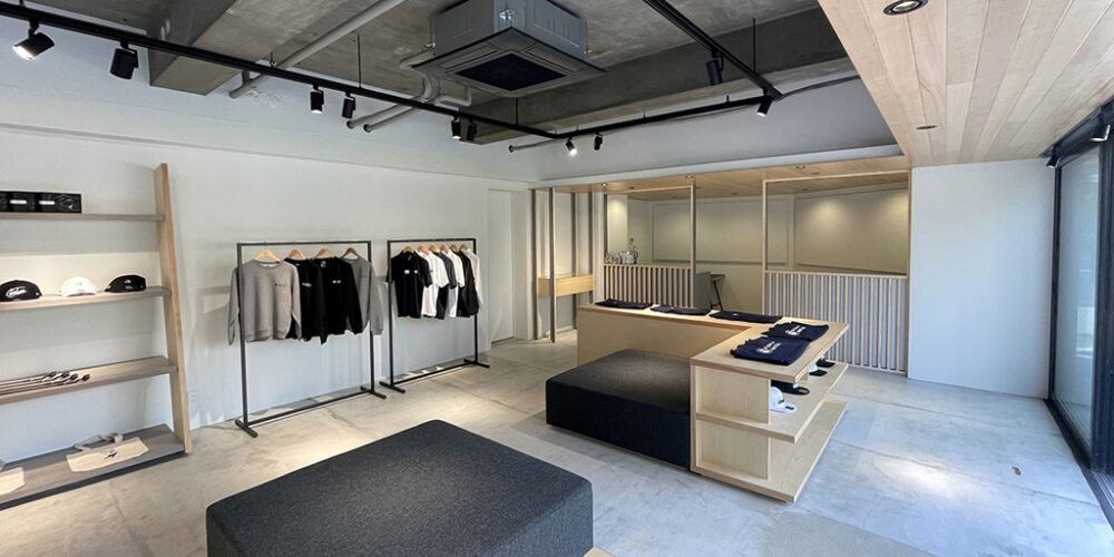 ファッション好きな若い世代が入りやすいようにと今年3月に代官山にオープンした店舗には、ややルーズなモダンデザインと機能素材を特徴としたオリジナルのアパレルと「ブラックボールド」や「タングラム」など、国内外からセレクトされたアパレルが並ぶ。今季は、オリジナル初の秋冬コレクションとなる身幅の広いハーフジップのスウェットとカーゴ仕様のジョガーに「ローカルゴルフ」のバケットハットを合わせたワントーンスタイルを提案。
