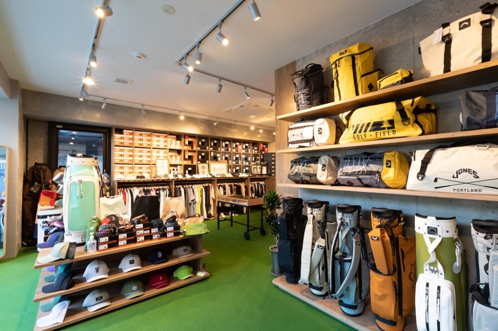 今季ローンチのオリジナルアパレル「ジル&ロウズ」の名を冠した店舗はインポートゴルフアイテムを扱うECサイトや卸元である「ニーディープ」のショールームも兼ねた空間。キャディバッグの「ジョーンズ」や「ラムダ」のサドルシューズといったアイテムは国内随一の品揃え。米ツアープロも着用するNY発アパレル「グレイソンクロージャー」の機能的でスポーティなアイテムにラムダのシューズやジョーンズのロープキャップなどで格上げするのが流儀。