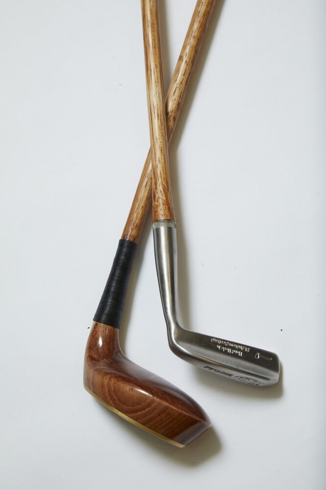 スコットランドで製造されるヒッコリーのパター。木製ヘッド4万9500円、金属ヘッド4万5100円
