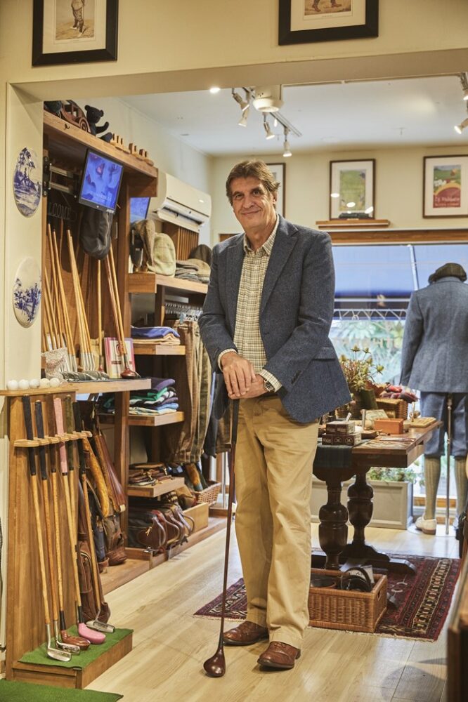 実は彼、近代ゴルフ生誕の国であるスコットランド人。しかも全英オープン開催コースで、ゴルファーの聖地、セント・アンドリュース出身。グローバル企業の会社員だった時代に里帰りした際、友人の誘いでプレーしたヒッコリーク ラブでのゴルフに開眼、地元の友人が営む工房「セントアンドリュースゴルフカンパニー」が作る伝統的なヒッコリークラブや、ニッカボッカのファッションアイテム販売、ヒッコリークラブでのゴルフ文化を日本で広める活動をスタ ートさせた。