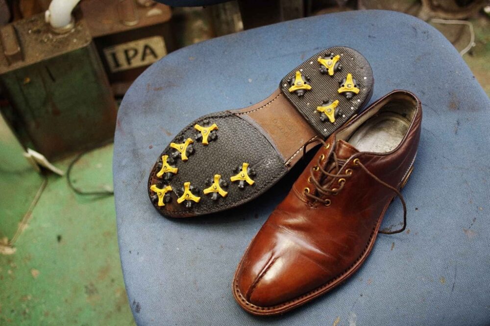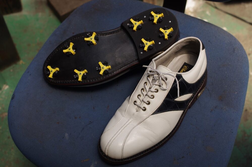 また、近年、『ビブラム』社から汎用のゴルフ用スパイクレスソールが普及したことで、ソフトスパイクではなく、スパイクレス化したいという依頼も多いです。革製ゴルフシューズは対候性や維持など手間もかかりますが、修理して履けば、自分の足に馴染む相棒となってくれます。私自身、ゴルフをしますが20数年同じ革製シューズを手入れしながら履いているのです」