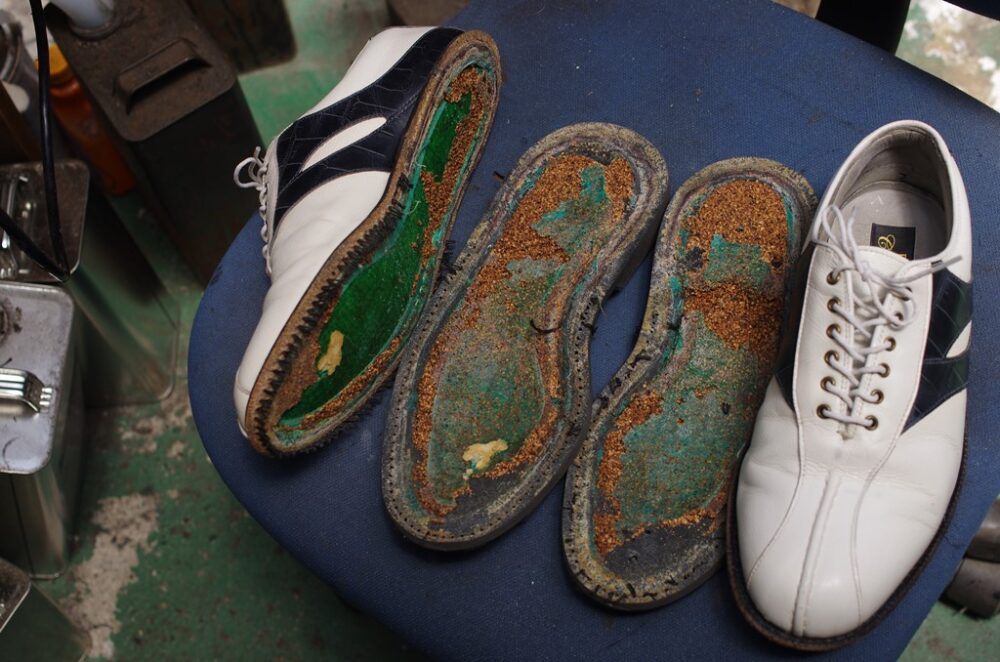 そんな状況も手伝ってか、旧いゴルフシューズをリペアして履きたいというゴルファーからの依頼が全国から殺到しているのが、岡山県倉敷市で「いずみ靴店」だ。
